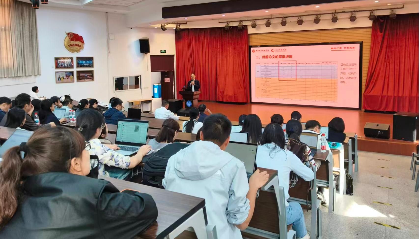 陈旭辉则从论文指导实施层面明确具体要求。他强调,指导教师是学位论文质量的“第一把关人”,必须切实履行岗位职责,严守论文写作规范与基本要求,在指导过程中不仅要关注论文形式合规性,更要强化对学生逻辑思维与学术表达能力的系统训练。针对本学期后续论文指导工作,陈旭辉明确了各阶段工作重点与时间节点。